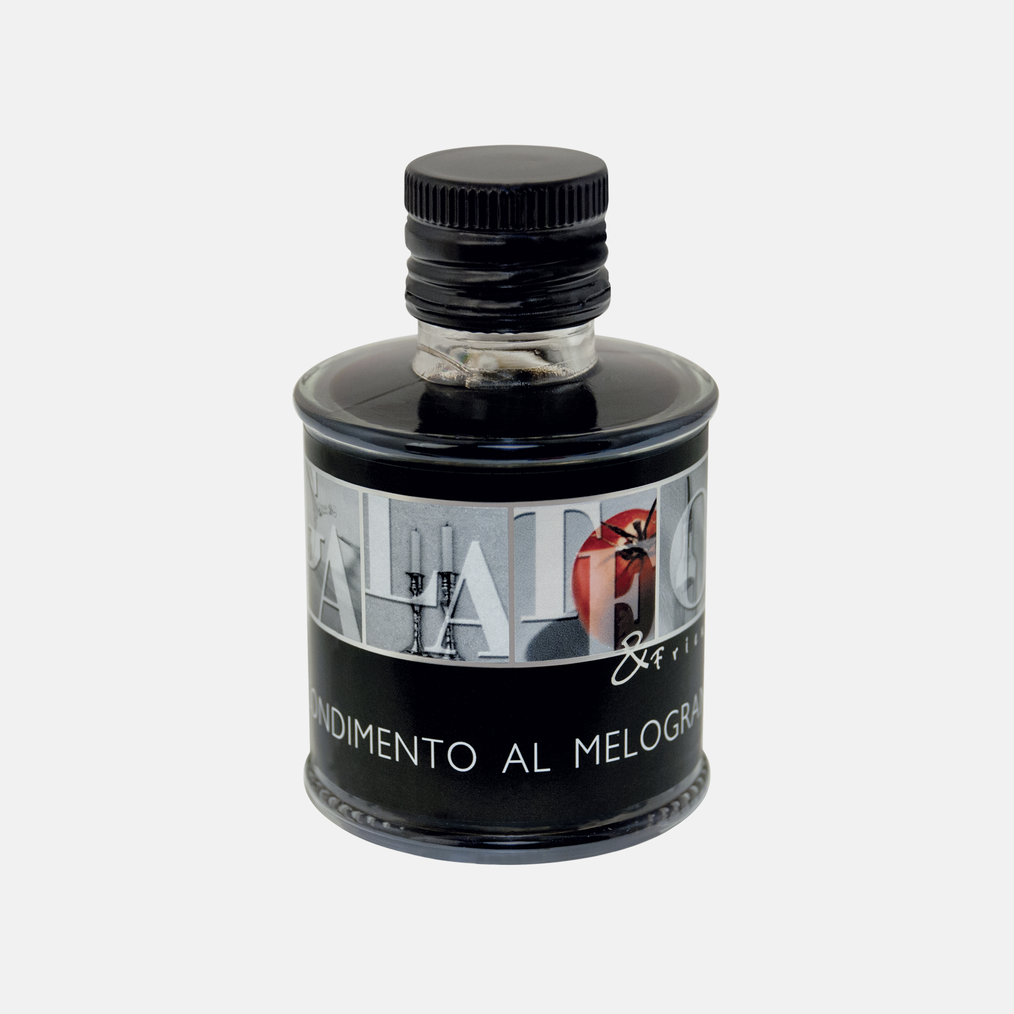 Il condimento balsamico al melograno di Galateo&Friends è una specialità ottenuta armonizzando le migliori fragranze d’uva bianca, il gusto agrodolce del condimento balsamico bianco e il profumo intenso e fresco del melograno. Un connubio insolito dall’aroma particolarmente gradevole e un gusto raffinato che si sposa idealmente a svariate preparazioni della cucina mediterranea. Da utilizzare in purezza o come speciale condimento per esaltare insalate miste, salse, macedonie di frutta, pesce, piatti a base di pollo, formaggi, gelati.